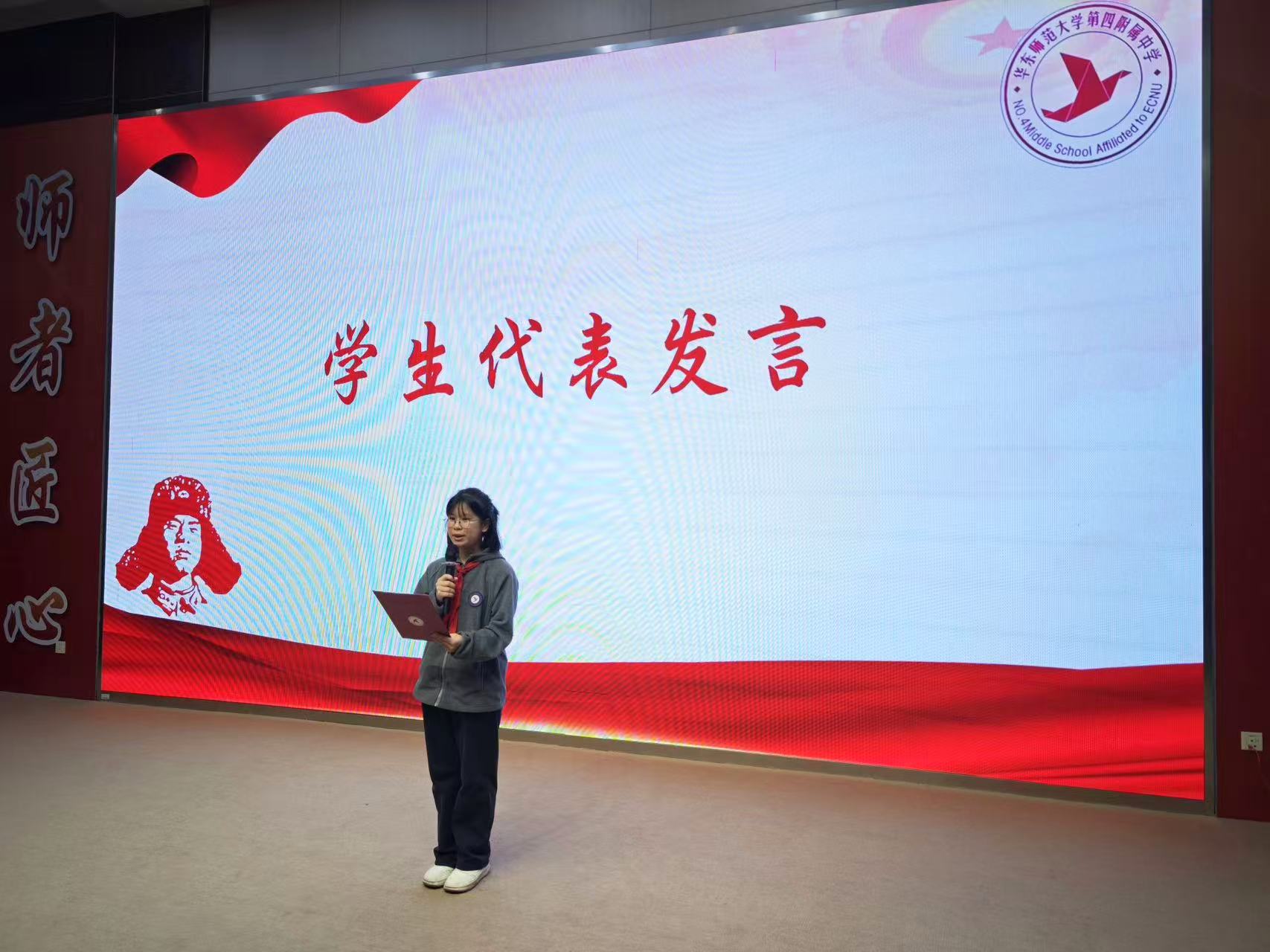 团员教师代表艾健怡老师在发言中呼吁同学们以华四实践诠释雷锋精神,让“扬雷锋精神 做追‘锋’少年”的信念深植每一位华四人心间。