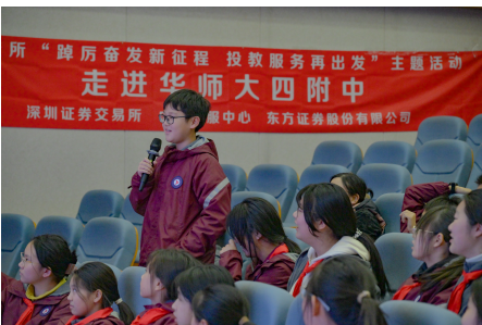 2025年12月4日,华东师范大学第四附属中学的校园里掀起一场财商学习热潮。125名七年级学子齐聚一堂,报名参加由深圳证券教育所投资者服务部带来的公益讲座。两位行业专家用生动有趣的微讲座形式,在一小时内为同学们打开了财富认知的新大门,现场互动热烈,同学们踊跃答题、积极提问,沉浸式感受财商魅力。
