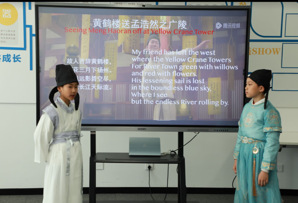 在将要结束的12月中,四五年级的同学们在博雅英语节的舞台上,用AI作笔,以思维为舟,展开了一场跨时空、跨学科的英语探索之旅。本届活动以 “AI-powered Explorers, Future-ready Creators!” 为主题,鼓励学生借助人工智能技术,在真实语境中发现问题、解决问题,用英语自信表达、创新展示。