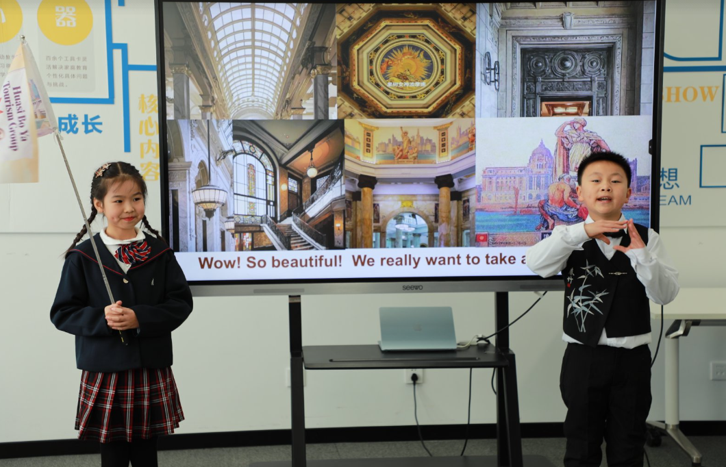 四年级同学围绕“My AI Tour of Ancient Wonders”主题,展开了一场融合历史、科技与英语的跨学科项目学习。学生们分组选择中外著名古建筑,在AI工具辅助下,展现出了历史的厚重与文化的韵味。