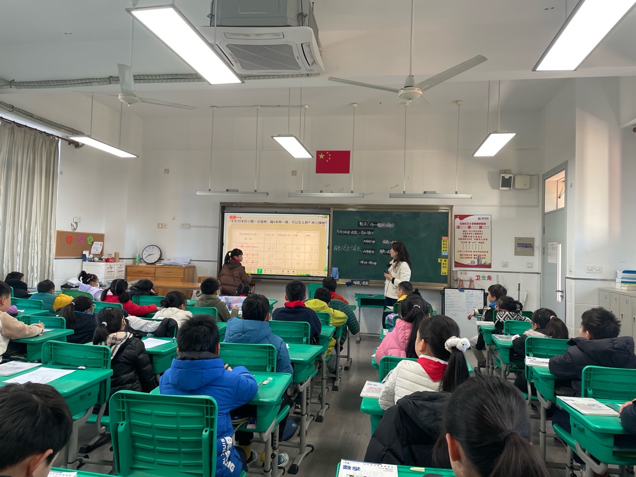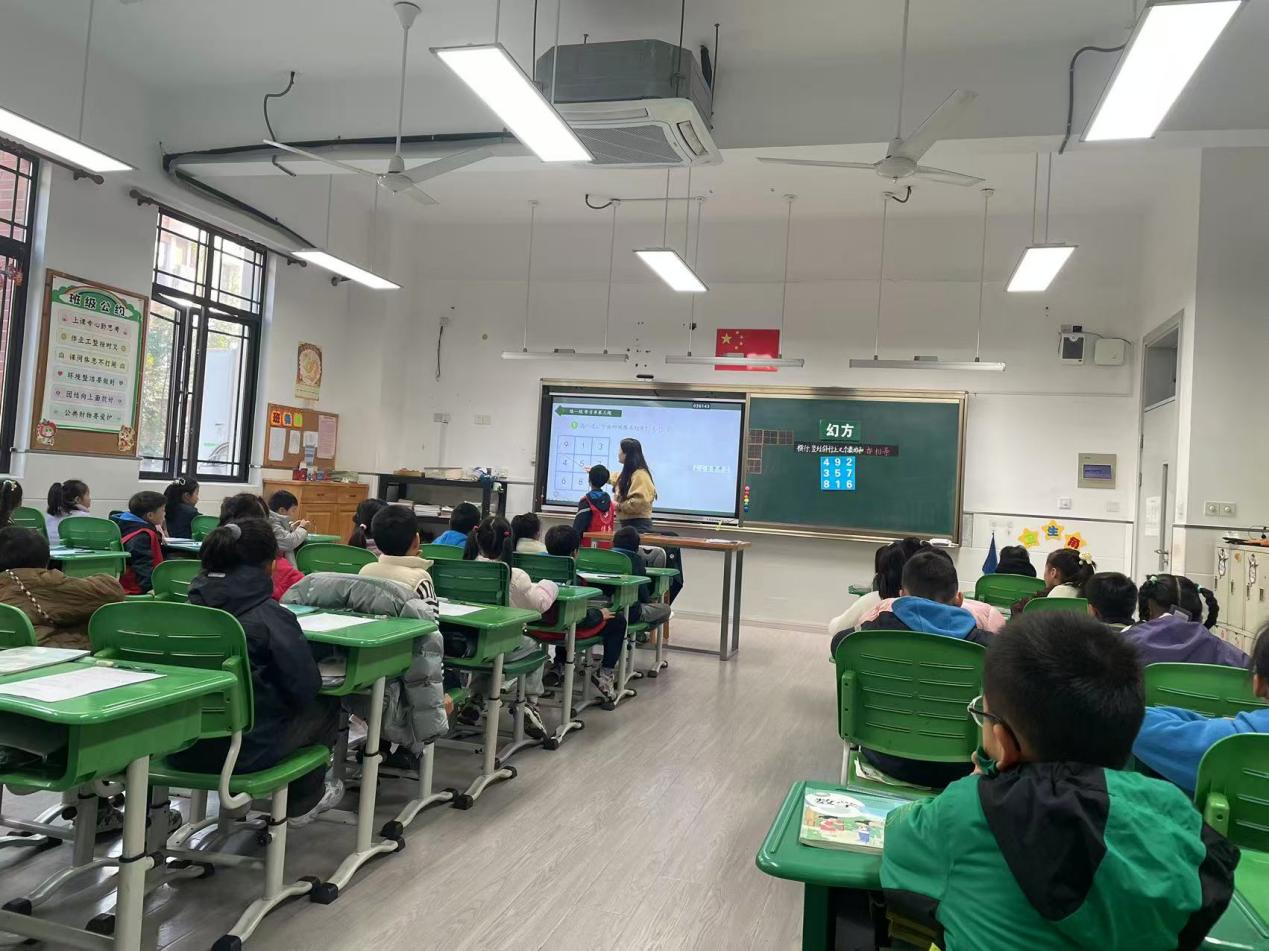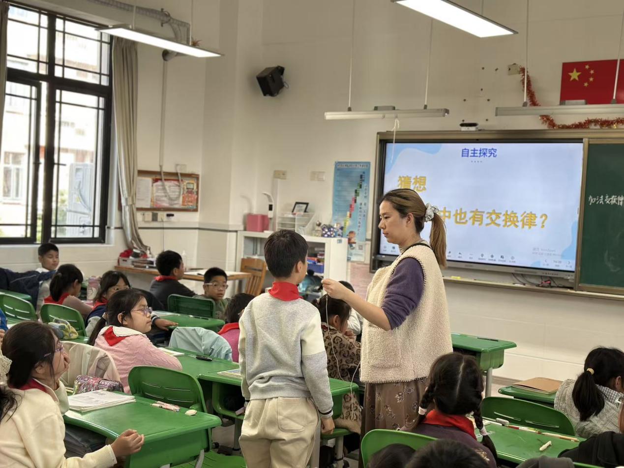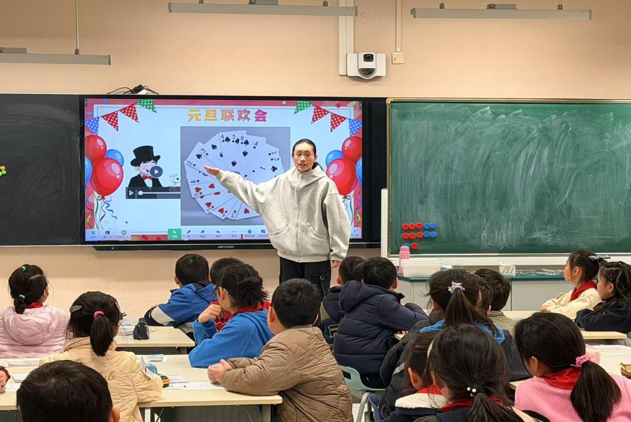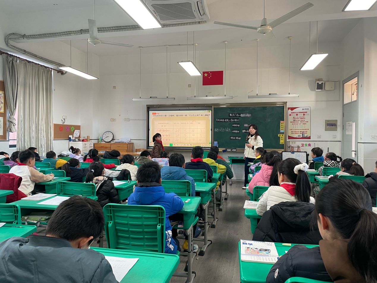 12月18日,数学组推选出的优质课----邱玲老师执教的《连加》和陈彧歆老师执教的《周期问题》进行博雅杯校级展示。两节课均以真实情境贯穿,融合AI工具,引导学生从操作走向建模。课后,普陀区小学数学教研员胡平老师带着老师们展开深入研讨,聚焦“学生思维外化”“对话质量提升”等议题。