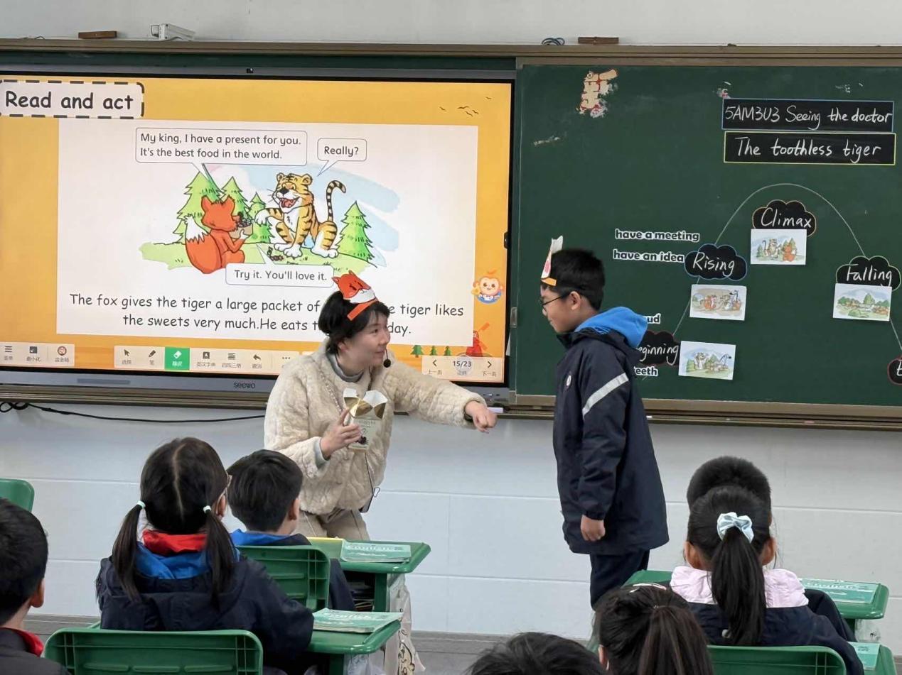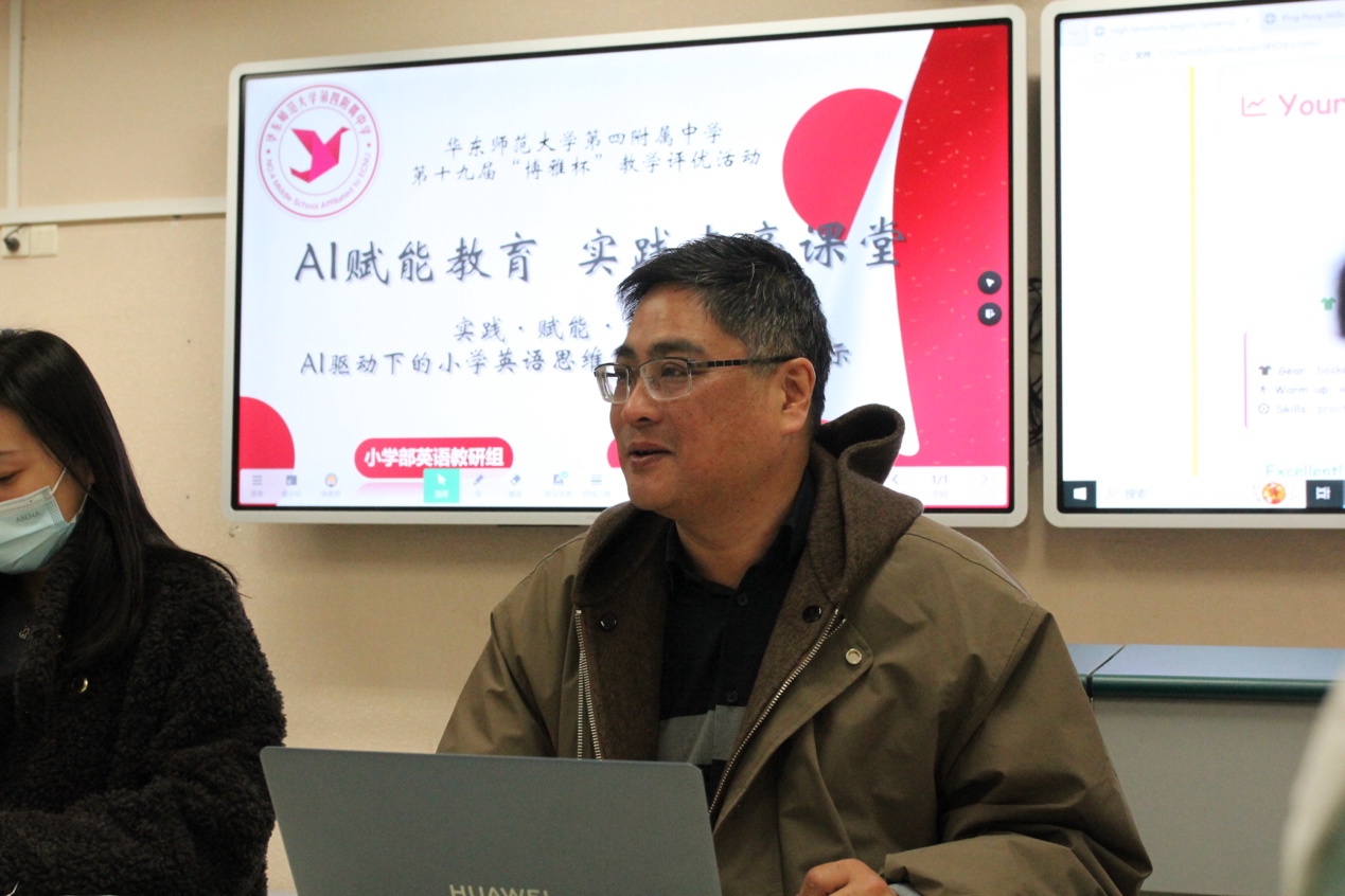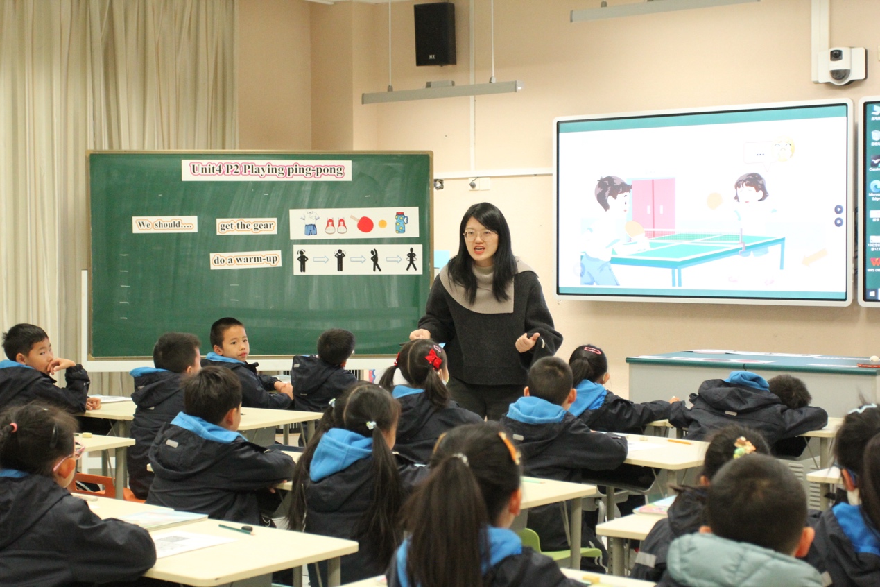 12月15日,英语组精选优质课例精彩亮相,艾健怡老师执教的《The Blue Sea》和潘彦达老师执教的《Playing ping-pong》率先进行博雅杯校级展示,两节课紧扣组内教研主题,分别以海洋跨学科情境、体育实践情境为载体,灵活运用AI工具,在语言教学中融入科学、体育等学科知识,充分展现了AI赋能跨学科学习的教学魅力。课后,普陀区教育学院教研室副主任、小学英语教研员正高级教师朱成老师和763团队领衔人段丽娟老师分别对两节课给予了高度评价,从海洋主题课中的AI情境探究、跨学科知识渗透,到体育主题课的AI游戏互动、运动技能可视化,老师们以趣味化、沉浸式设计搭建了语言实践与思维训练平台。随后教研组聚焦“AI赋能跨学科学习落地”“学生思维品质自主建构路径”“AI工具适配性优化”“课堂育人实效提升”等核心议题展开深度交流,碰撞教学智慧,凝聚改进共识。